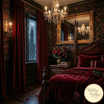 Creating a Vamp Romantic bedroom does not require a full renovation or an extravagant budget. The mood comes from thoughtful layering rather than excess: a velvet bedspread in a deep wine tone, a vintage-style mirror, heavy curtains, warm lamplight, a faded rug, and a few carefully chosen accents. Even one or two of these elements can begin to shift the room into something more atmospheric and deeply inviting. The most cost-effective approach is to start with a single statement piece, then build around it with texture, secondhand-inspired finishes, and a palette of rich reds, dark neutrals, and soft metallics. When done well, the result feels less like a trend and more like a sanctuary: intimate, dramatic, and undeniably romantic.