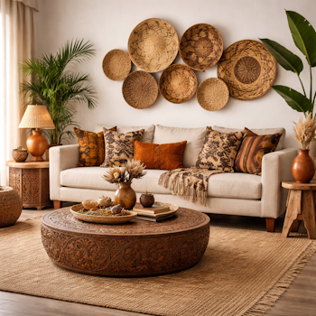 The most cost-effective approach is to begin with one anchor category and build from there. A woven basket wall, a natural-fiber rug, or a set of mudcloth-style pillows can establish the tone almost immediately. From there, add depth through smaller layers: a terracotta vase, a carved wood accent, a patterned throw, or a cane side table. The room begins to shift not because of quantity, but because of consistency in texture, color, and mood.